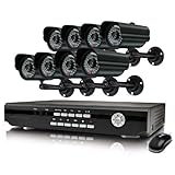 We got the smaller Swann system for our home and it worked great (see my other review). So my husband decided to set this one up for our business with 8 cameras. The cameras are amazing hi-res quality-color in daytime and black and white in night vision. 8 cameras works well with the DVR and we set the DVR to only record motion so it does not run all day and night. That makes it easy to find stuff when it happens. The package came with everything that we needed, cable, connectors, remote, instructions. My husband found it helpful to go to their website and watch the how to videos for installation at