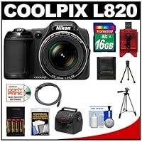 Nikon Coolpix L820 Digital Camera (Black) with 16GB Card