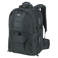 I purchased this backpack for my husband, who is an avid digital photographer. He shoots with a Digital Rebel XT, and has the usual (and perpetually expanding) assortment of lenses, filters, cords, laptop, and tripod to be hauled about. This bag carries it all, with room to spare. It is sturdy and well constructed, nicely padded, and the little miscellaneous pockets and pouches are logical and abundant (for things such as memory cards, pens, notepads, etc.)